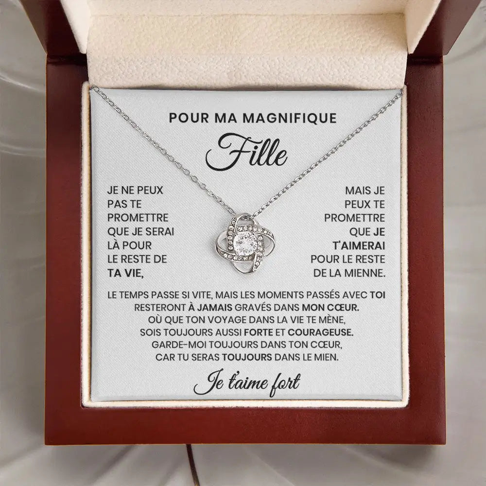 Le collier "pour ma magnifique fille" est conçu avec une finesse exceptionnelle. Les pierres étincelantes capturent la lumière de manière délicate, ajoutant une touche de glamour à chaque tenue. Son design intemporel en fait un bijou parfait pour toutes les occasions, qu'elle le porte pour une soirée spéciale ou au quotidien. C’est le cadeau idéal pour une fille forte et courageuse, reflétant sa beauté intérieure et extérieure.