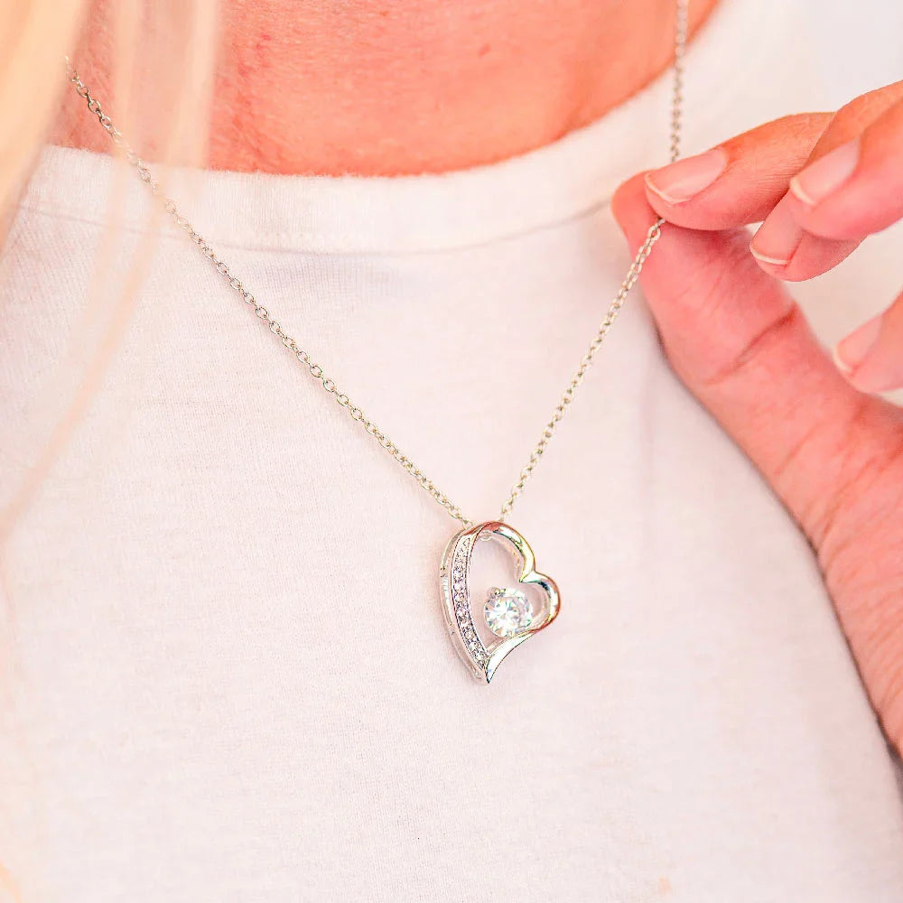 Ce magnifique collier est fabriqué avec un pendentif en forme de cœur, entouré de cristaux étincelants. Un bijou facile à porter et qu’elle conservera longtemps.