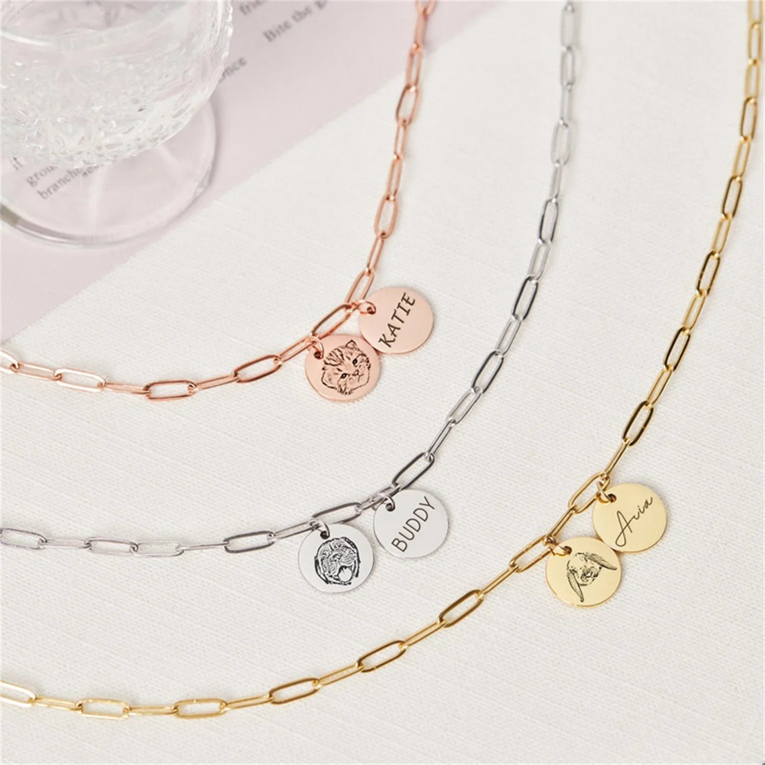 Custom Dog Portrait Necklace For Women Personalized Pet Photo Pendant With Paper Link Chain Memorial Jewelry Gifts For Pet Lover